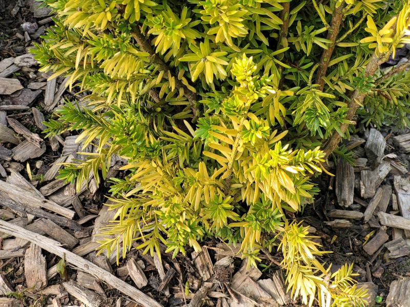 Mehrfach habe ich nun Eiben an dieser Stelle nachgepflanzt, teilweise auch mit Erfolg. Nur diese eine wird jetzt wieder gelb, kein Mauseloch zu sehen und Regen gab es ja auch genug in diesem Jahr.