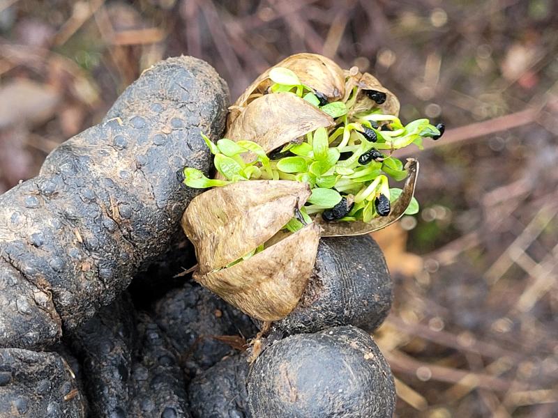 Hier ist immer reichlich Selbstaussaat. Die Sämlinge kommen stets erst im Frühling.