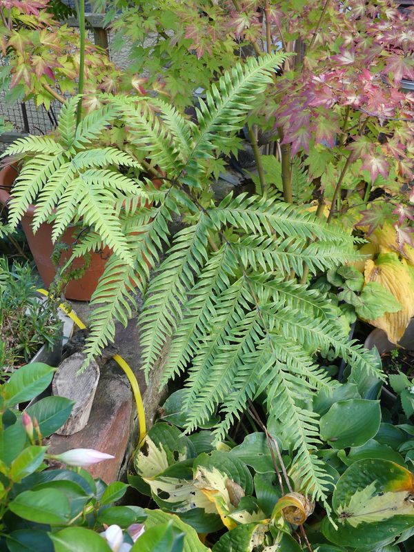Unsere Woodwardia unigemmata hat dieses Jahr tatsächlich drei Wedel produziert. In den letzten Jahren waren es immer nur ein bis zwei.