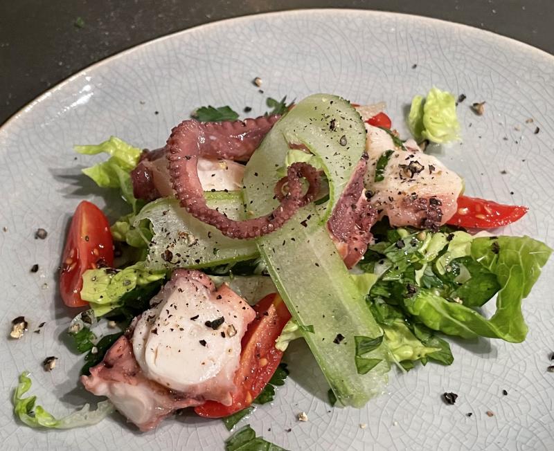 Bei uns gab es heute Pulpo (eingelegt gekauft) auf Salat.