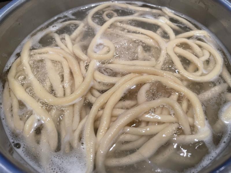 Heute mal wieder Pasta ... Pici (handgerollte dicke Spaghetti) mit cacio e pepe. Man braucht nur Pecorino und Pfeffer und etwas Nudelwasser. :D