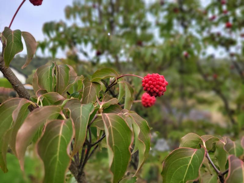 tolles Rot! Welcher Cornus kousa ist das? Weder der Spindelstauch, noch der Hartriegel zeigen im Wiesengarten so kräftig rote Farbe, leider. Der Hartriegel hatte noch nie solche roten Früchte. Leider.