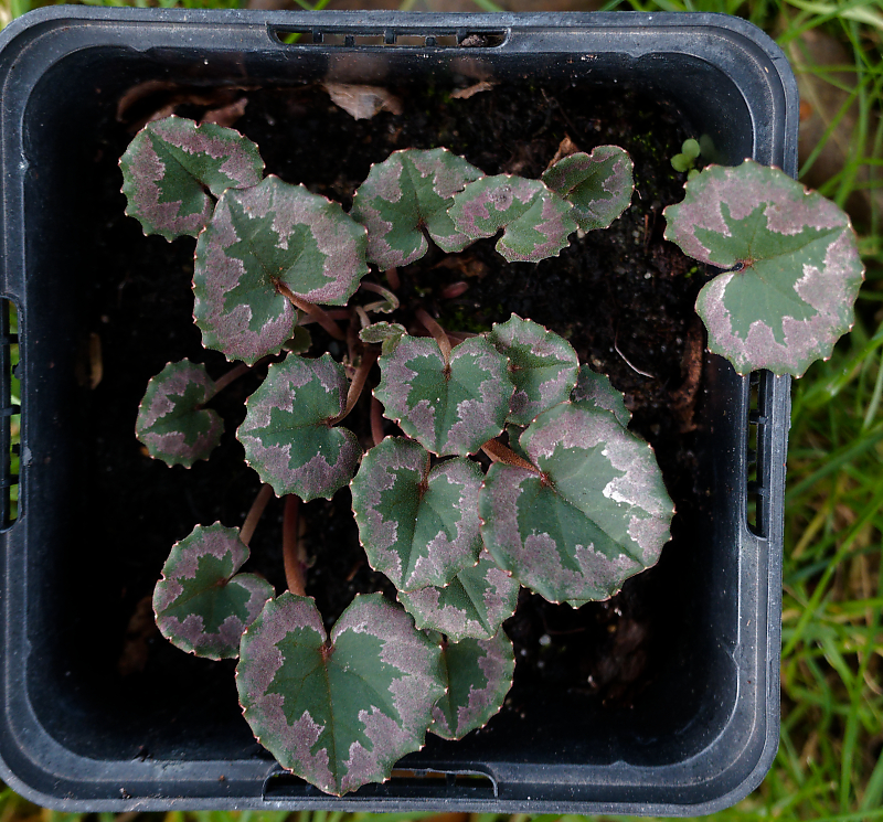 Dieses C. hederifolium hat ein nettes Blatt, fast ist es ein heller Tannenbaum, ein bißchen dick, aber naja...