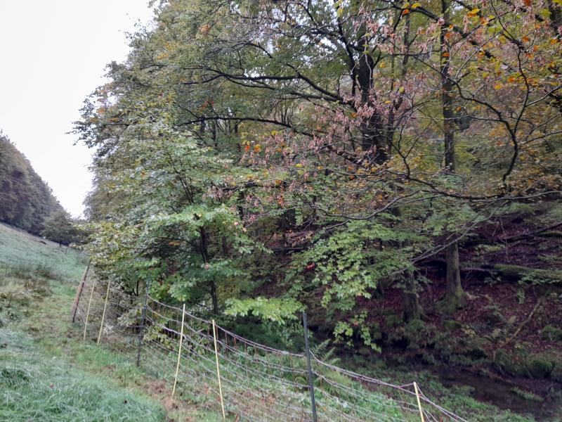 Netz im Gemüse heißt kein Strom. Der Rest war ein Kinderspiel fürs Wild. Bis auf dass das Tier sich 25 mal mit Netz in der Lummerke überschlagen hat und bestimmt Todesangst hatte. Damit fälle ich heute noch diesen Buchenaufwuchs. Und wenn mich wer anzeigt... wünsche ich viel Spaß bei der Beweidung der Lummerke ohne uns. Ich wüsste allein nicht, wie ich gerissene Tiere aus dem nicht befahrbaren Steilhang bekäme. Wer direkt nebenan eine Luchsin aussetzt, der darf sich nicht wundern, wenn Schäfer zur Selbsthilfe greifen