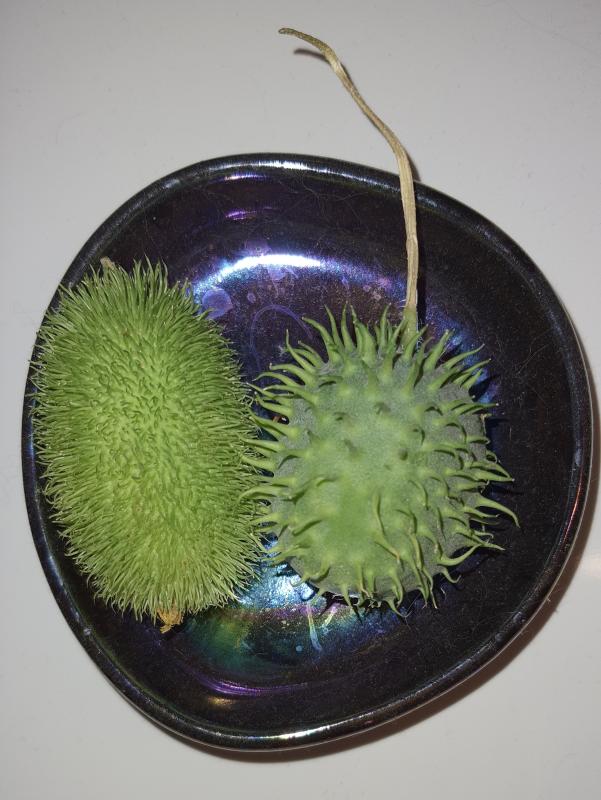 Wahrscheinlich Cucumis dipsaceus und Cucumis hirsutus, Ziergurken.