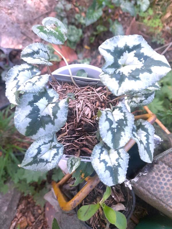 Cyclamen hederifolium `Silverleaf´(?) blüht auch noch beständig, dieses Exemplar vom Mittelrhein ist seit knapp 1 Jahr hier gelandet, und entwickelt sich