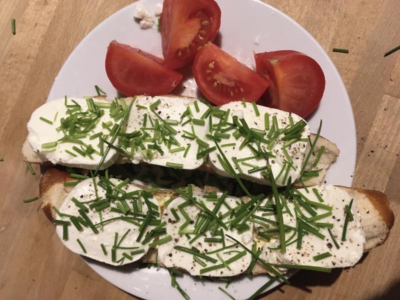 Laugenstangerl mit Schafkäse und Schnittlauch.