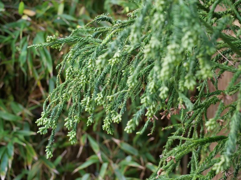 Erster Gedanke Cryptomeria japonica, aber da die eher selten ist, vermutlich eher die manchmal sehr ähnliche Chamaecyparis pisifera. Bäume sind aber nicht mein Schwerpunkt..