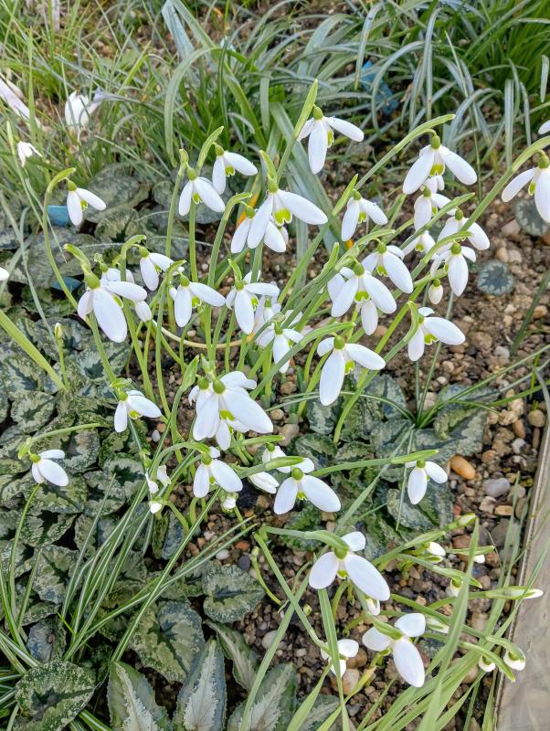 Von meinen bereits knospenden oder blühenden G. reginae-olgae sind dieses Jahr auch sehr viele abgefressen worden - nach 400 mm Regen in 4 Monaten ist die Nacktschneckenpopulation förmlich explodiert. Die Blätter blieben aber unbeschadet. G. elwesii und bursanus blühen hier überwiegend etwas später und profitieren wohl von dem kältebedingt nachlassenden Appetit der Tierchen.