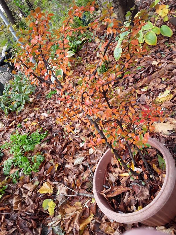 Aramisz Ulmen im Herbstkleid, das wunderbare 'Chaosbeet' von kohaku, Hans Herberts Zwergmispel im Laubbett und ViMs Hängebuche im Frost - alles