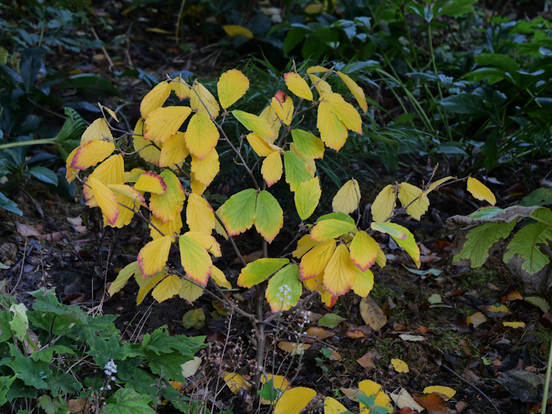 Spannend wie unterschiedlich die gleiche Sorte, in diesem Fall Arnolds Promise, sich färben kann. Beide Exemplare stehen Luftlinie 8m voneinander entfernt, beide ziemlich schattig, natürlich gleiche Bodenverhältnisse. Der Größere vielleicht etwas feuchter als der Kleinere. Beide in derselben Minute aufgenommen.