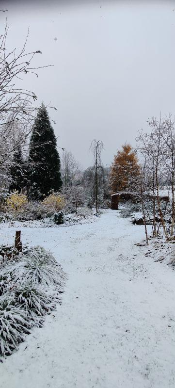 Der Nachmittag zeigte sich hier ungewohnt sonnig, und der Wind flaute wieder etwas ab, so dass man noch zwei, drei Stunden draußen arbeiten konnte. Natürlich gab es trotzdem etwas Nieselregen, aber der beschränkte sich auf ein paar Tropfen. In der Nacht soll es weitere Schauer geben, und die für Montag angekündigten Schneemassen werden nun zum zweiten Mal wieder als Regen prognostiziert. Es sieht aber so aus, als ob es Anfang Dezember tatsächlich kälter wird, das ist genau der gleiche Wetterverlauf wie letztes Jahr, als der ewig lange Herbst mit milden Temperaturen abrupt von etlichen Tagen Kahlfrost beendet wurde. Braucht man nicht, und vielleicht wird es diesmal nicht so wild, aber mittlerweile nerven diese Extreme nur noch.