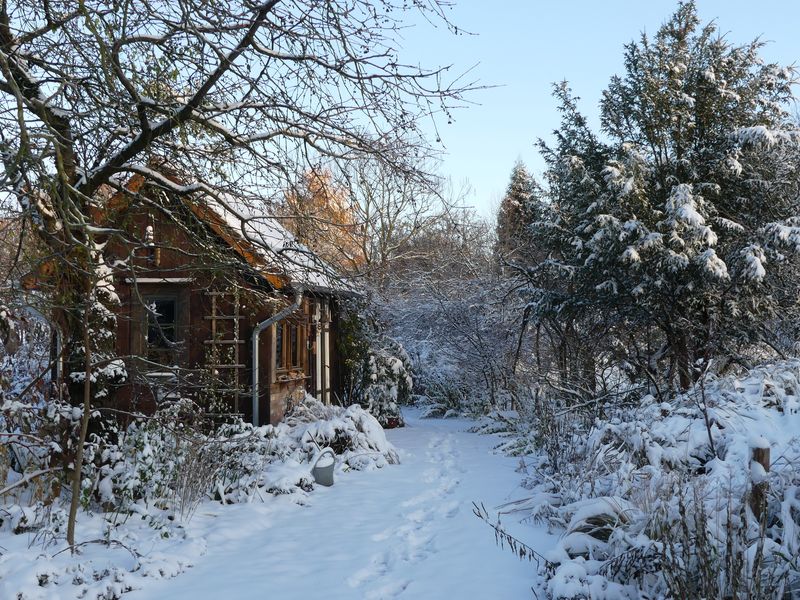Bezaubernd, der schneebedeckte Garten, und dann auch noch mit so wunderbarem Sonnenschein! So etwas wünsche ich mir jeden Winter, aber es ist mir leider so gut wie nie vergönnt...