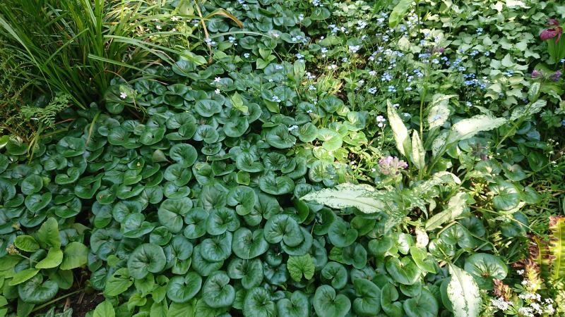 Und als kleiner Verwandtschaftgag zum Asarum-Polster in etwas besserer Halbschattensituation: Saruma.
