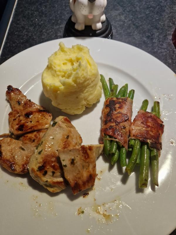 Gestern gab es Schweinefilet mit Prinzessbohnen und Kartoffelpü