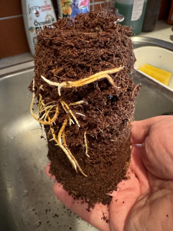 Die 1. bewurzelte RdB mit atypischer Blattform soeben in den Topf für 2024 verpflanzt.