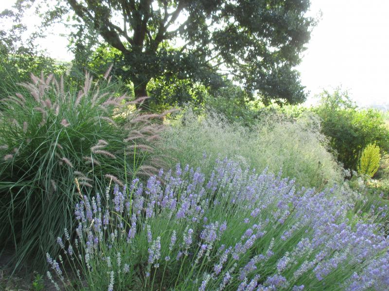 Nachmittags im heißen Juni wirkt dieses Kombination im Schatten der großen Eiche erfrischend kühl.
