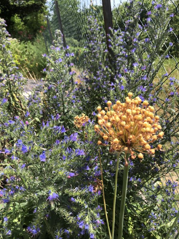 Als ich vor über 14 Tagen in Würzburg war, stand Erinacea in voller Blüte (übrigens Riesenkissen, also viel Platz lassen) und war teilweise schon am Abblühen.