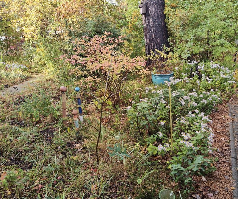 Aster ageratoides 'Asran' wächst bei mir alles andere als horstig. Zur Unterdrückung von Unkraut eignet sie sich aber auch nicht. Sie steht denkbar "ungünstig" unter der Kiefer zwischen Heidekräutern.