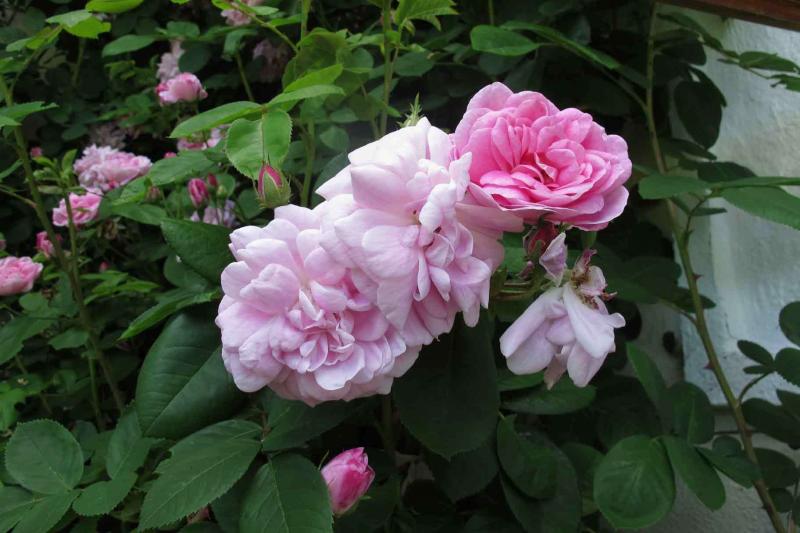 Eine der ersten Rosen, die ich hier gepflanzt habe, war der Zigeunerknabe (gezüchtet 1909). Die Beschreibung von Mercedes passt hier auch: Gesund, robust, winterhart, stachlig. Schönes Farbspiel von Werden zu Vergehen der Blüten.