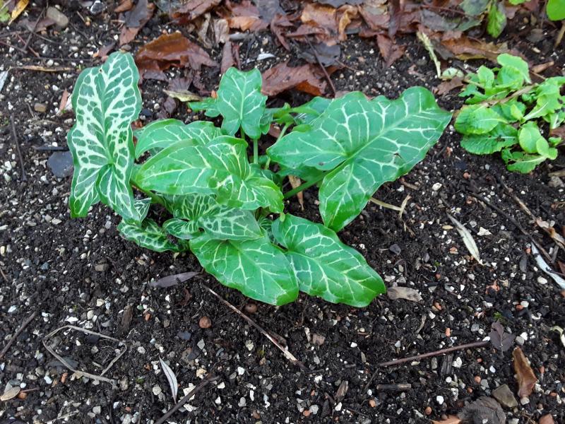 Der für mich wichtigste Unterschied zwischen Arum italicum und Arum maculatum besteht darin, dass A. italicum im Spätherbst schon austreibt und so auch bei Frost unverdrossen wintergrün die Schattenbeete bereichert.