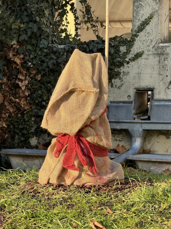 Hier der Vlies+Jutesack Schutz für die im September 2023 gepflanzten Negronne und Bozener Hausfeige.