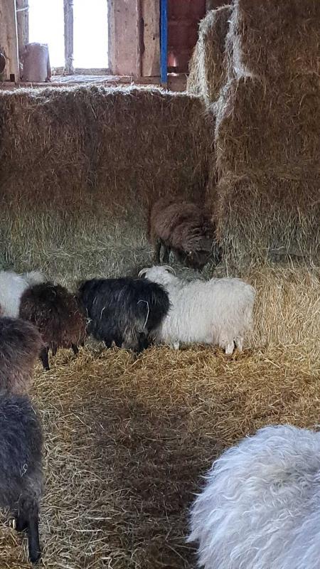 Zwischendurch kreative schon fertig gespritzte Schafe in der Scheune