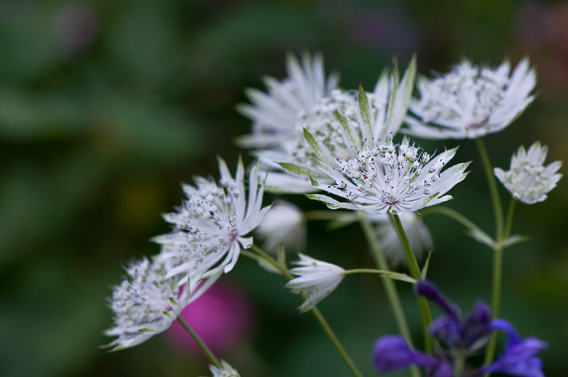 Tiefere Farben und mehr Stiele? Zumindest die wilden Astrantia major die ich auf der Alb gesehen habe sind alle weiß/grünlich weiß. Und sind als Pflanze ziemlich dünn. Haben nur wenige, oft nur einen Trieb. Was m. E. nicht nur am Standort und Pflanzenalter gelegen hat.
