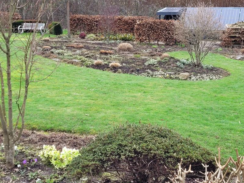 Allerdings schreitet das Frühjahr bei extrem mildem Klima schnell voran, sodaß ich mit dem Rückschnitt von Stauden, Gehölzen und Gräsern relativ früh begonnen hatte. Heute bin ich soweit durch, wobei ich mit dem Rückschnitt von Rosen, Buddleja oder Perovskia wie immer noch ein wenig warte. ;)