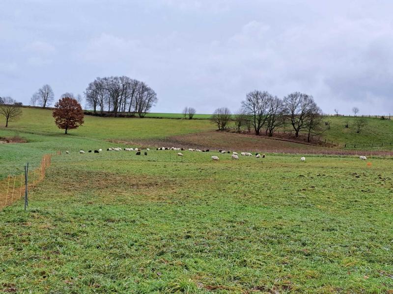 Winterliche Nachhute erfolgt häufig auf Deutschem Weidelgras. Grande Katasrophe! Die große Herde ist 2 Tage da und steht bereits im Matsch! Die müssen morgen weiter. Da muss dann notfalls Lena anbrettern. Ich müsste noch den Berg abzäunen. Witz komm raus Du bist umzigelt! Bei dem Sturm abzäunen ist... mühsam, weil das Netz sonstwohin weht. Ich habe heute 2 Kleingruppen weiter und abgezäunt. Die dritte ist jetzt unfreiwillig auf Heuversorgung - da hält aber wenigstens die Grasnarbe.