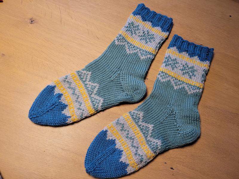 Als stiller Bewunderer eurer Kunstwerke muß ich auch mal was sagen: Buddelkönigin, diese Art von Pullover sieht man manchmal in nordischen Krimis, und es ist genau das, was ich wahnsinnig gern hätte und vermutlich nie bekommen werde :D Ein besonders schönes Stück, auch die dezente Farbabstimmung! Und die Enkelsocken sind klasse, die Arbeit mag ich mir, abgesehen davon, daß ich nicht stricke, gar nicht vorstellen.