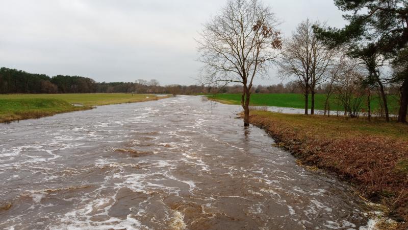 Auf den Feldern steht das Wasser, die Flüsse und Bäche sind voll. Die Wehre sind geöffnet, damit alles abfließen kann.