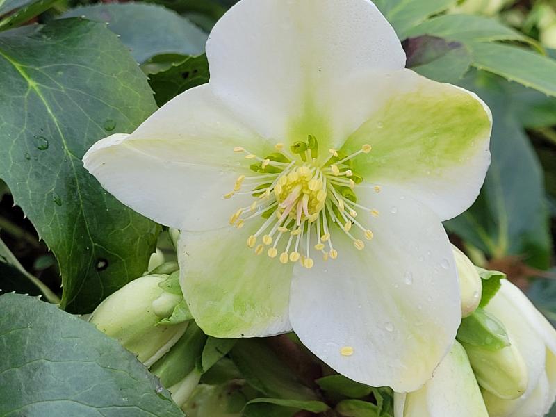 Hier beginnen die Christrosen, vermutlich H. niger in Sorten: