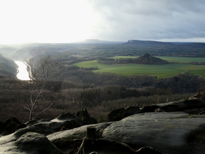 Vom Kipphorn der Blick über den Zirkelstein und die beiden Zschirnsteine ins Böhmische - dort schien die Sonne, über uns blieb es dicht bewölkt.