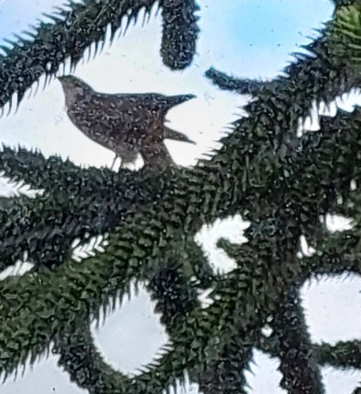 Einer "unserer" Falken wird zum Bürofalken. Er sitzt 3 m von Fenster meines Büros in der grossen Araucaria. Ganz entspannt und lässt sich noch nicht einmal bei der Fiederpflege von meiner hektischen Fotografierei stören. Dem ist es hinterm Haus wohl zu unruhig geworden bei den gefühlten über 100 Spatzen und dem Trupp Rabenvögel ;D