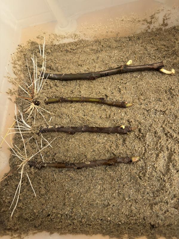 Nach den ersten Versuchen mit ein paar BT Steckhölzern, sind mir nun zwei eigentlich gut aussehende eingegangen. Der eine war ein Wasserwurzler der sich in Perlit/Kokos auf der Fensterbank verabschiedet hat. Grund war evtl zu wenig Wurzeln und zu viel Austrieb oder ein kalter Luftzug nach einem längeren Lüften. Kann aber auch Schimmel nicht ganz ausschließen, da ich den Parafilm recht lange dran gelassen habe.