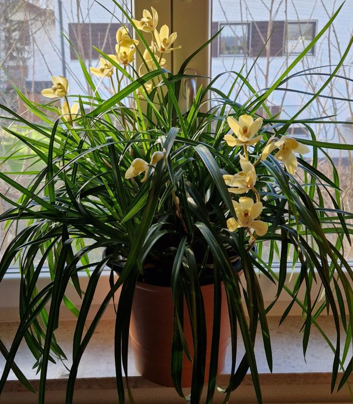 Meine Cymbidium hatte ich letztes Jahr nach der Blüte umgetopft und ist so viel gewachsen, daß sie den größeren Topf voll ausfüllt.