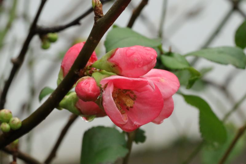 Die japanischen Zierquitten blühen eher schon einmal so früh.