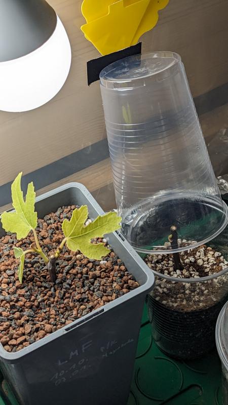 Die LMF links im Bild habe ich von Kokos/Perlit in Kokos/Perlit/Anzuchterde umgetopft, da sich dort nichts mehr getan hat und von der Wurzelmasse ganz ok aussah. War aber noch viel zu wenig, wie sich herausstellte. Wieder was gelernt. Werde mich auf jeden Fall erstmal zurück mit dem gießen wenn ich Wurzeln sehe.