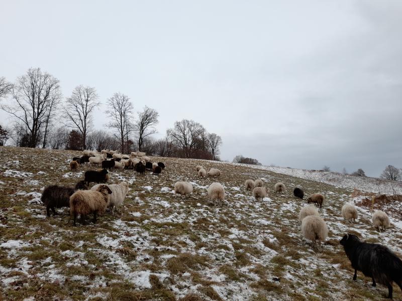 Heu gibt es für uns in 2 Qualitäten. Das meint nicht gut trocken oder schimmelig. So was Minderwertiges haben wir nicht. Aber es gibt langfaseriges Weidelgras und Heu von artenreichen Flächen. Ersteres mag sein, dass das für Rinder und Pferde toll ist. Wirklich kein schlechtes Heu. Aber das gibt Blicke wie: Dein Ernst? Wenn es aber Mütterheu gibt - das von den artenreichen Flächen, duftend wie ein Sommertag... dann kommt es zu Prügeleien wer als Erstes ran darf. Keine Frage: Das hat auch mehr input. Deswegen füttern wir es bevorzugt im letzten Drittel der Trächtigkeit. Wenn wir denn Heu füttern müssen. Und aber auch, wenn es im Winter besonders schwierige Phasen gibt. Und die stehen ja jetzt an. Bis 40 cm Schnee. Das ist alles nicht hochdramatisch. Aber gerade die Skudden an der Silberborner Straße müssen ja auch erstmal erreicht werden. Notfalls - wir erinnern uns an den Orkan Friederike, wo sie da sogar ganz oben lagen und ich zu Fuß mit Heusack hinter mir herschleifend raus wanderte - zu Fuß. Jetzt haben sie heute Abend reichlich Mütterheu gehabt. Wenn ich eine Stunde später bin, wird´s nicht dramatisch sein.
