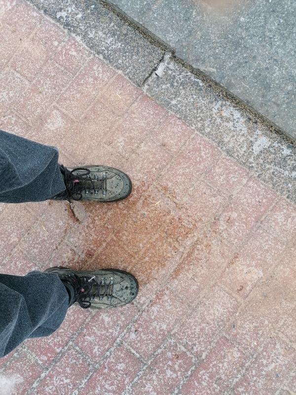 Die Postbotin hatte Spikes unter den Schuhen und hat uns dringend davon abgeraten, heute aus dem Haus zu gehen.