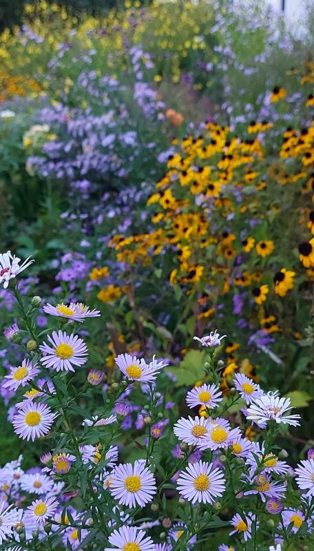 Und ich an die kleine Aster vorne rechts, weil ich SGs Herbstkombi so schön finde. :D Diamantgras auch, hab ich leider nicht hier.