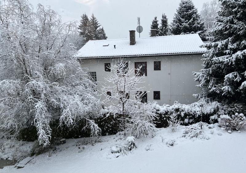 Hier 25cm. Musste mir erst einmal einen Weg zum Vogelhäuschen freischaufeln. Foto vom Wohnzimmer aus. Heute Abend soll's noch Nachschub geben.