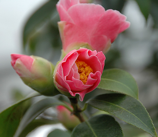 Neben den kleinblütigen Kamelien gefällt mir in diesem Jahr 'Mary Ph. Tayler' besonders gut. Die teetassengroßen lockergefüllten Büten haben für mein Farbegefühl einen sehr schönen rosa Ton, der zur Mitte intensiver wird. Dazu das dunkelrüne Laub, es bildet einen guten Kontrast.