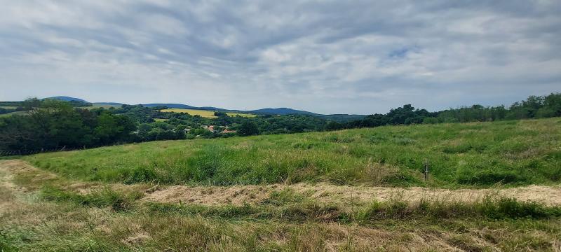 Hier eine andere schon alte Bild. welche in der Hintergrund den erste "Berg" von der Mecsek, namens Langehöhe zeigt, links in der Vorgergrund das Dorf und der Weg.
