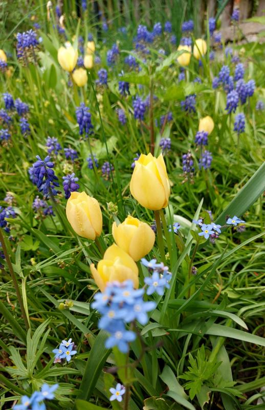 Gelbe Tulpen mit Muscari gibt's hier auch. :D