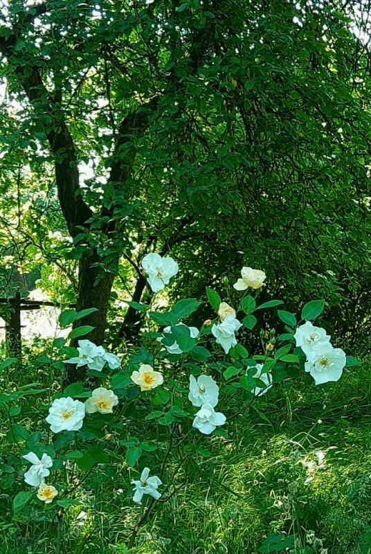 Apfelbäume habe ich auch, werden langsam aber von den Eichen überrollt. Mit Flieder, Wildrose, Narzissen... Hach, Mai! :D