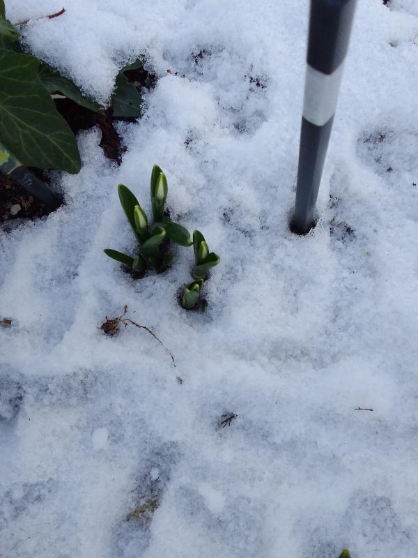 Die nivalis haben winzige grüne Spitzchen, der Boden ist nach Dauerfrost immer noch gefroren, daher ist es schon verblüffend, dass es hier schon Knospen zu sehen gibt.