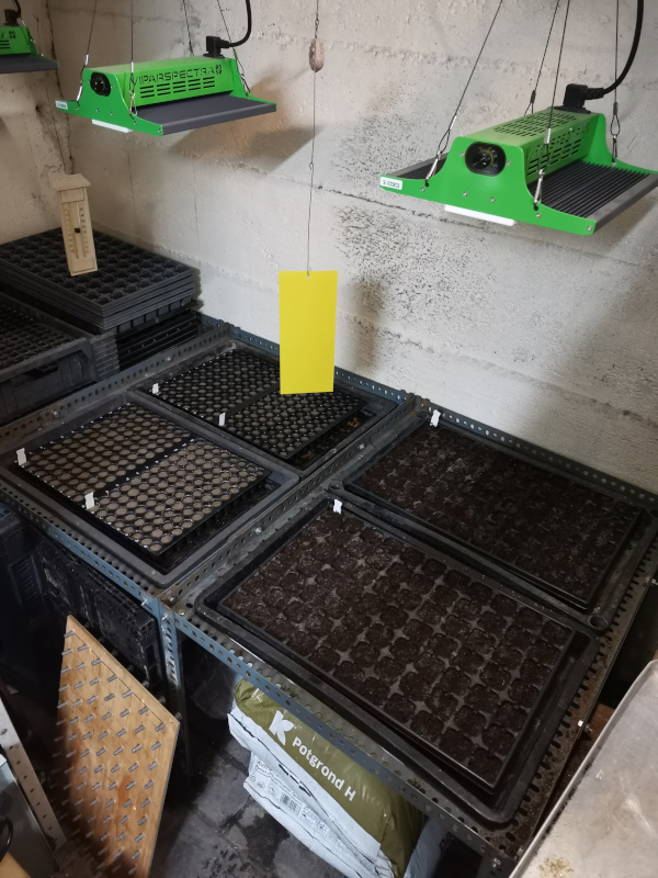 Seit heute sind die ersten 538 Töpfe mit Saatgut bestückt. Salat, Spinat und Zwiebeln. Kohl folgt die Tage.