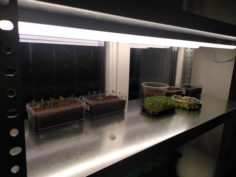Habe mein Setup verändert - gekeimt wurde auf nem Heizkörper - hat bei knapp 30grad hervorragend geklappt. Jetzt stehen sie am Fenster und ich habe zwei 12W Leuchtstoffröhren zum Support installiert, die den lichtarmen Vormittag und Nachmittag abdecken. Aktuell aber nur eine Röhre an. (Setup noch im Aufbau - der Abstand zur Leuchte wurde noch verringert)
